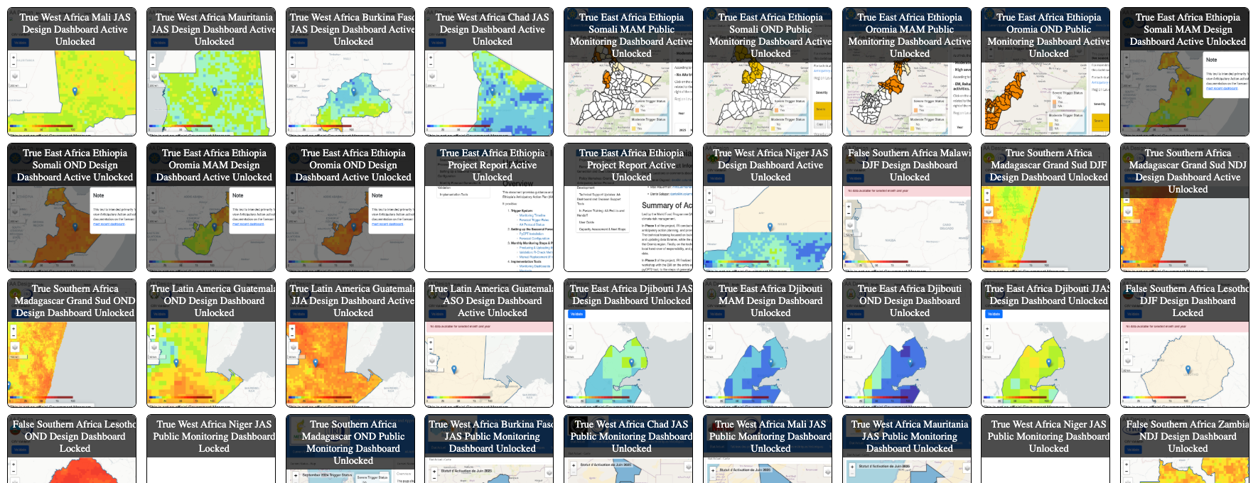 More than ten countries have already used tools like these to design and operate Anticipatory Action projects. As a farewell, we leave you with a figure with thumbnails of many of the dashboards used.